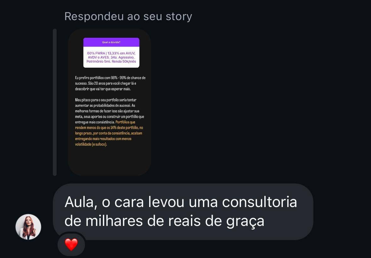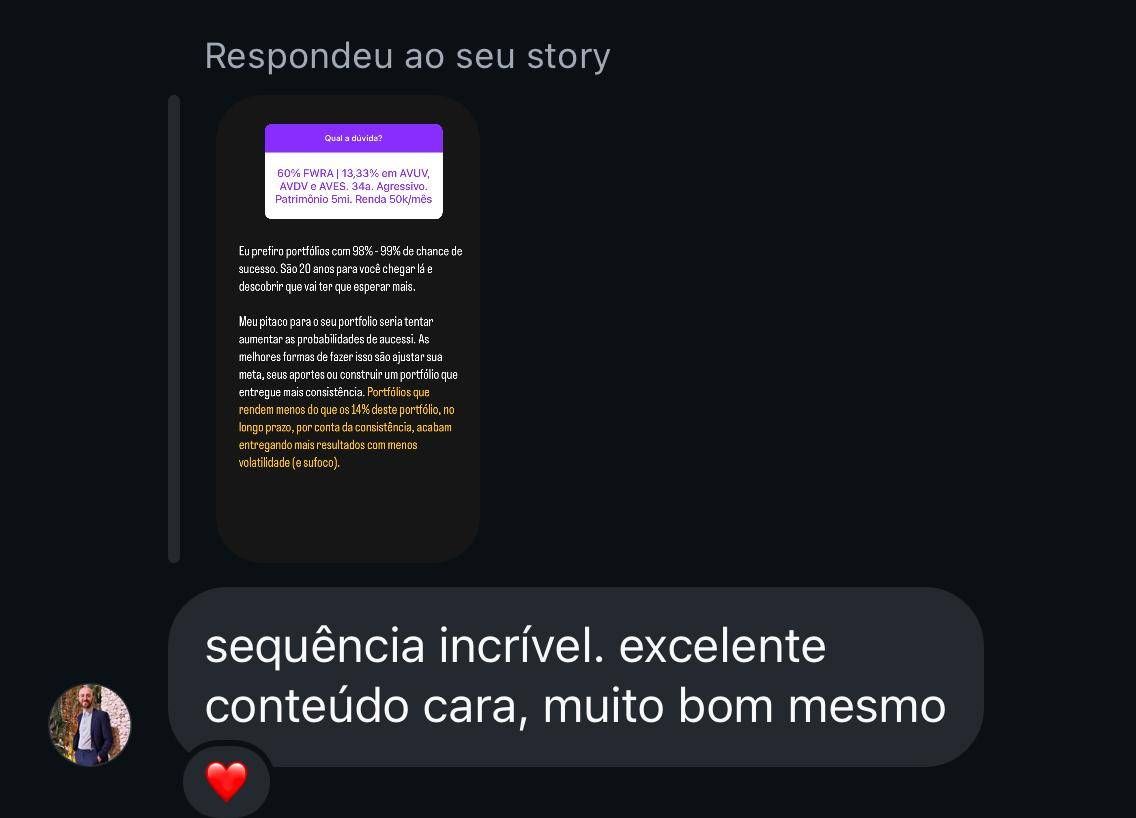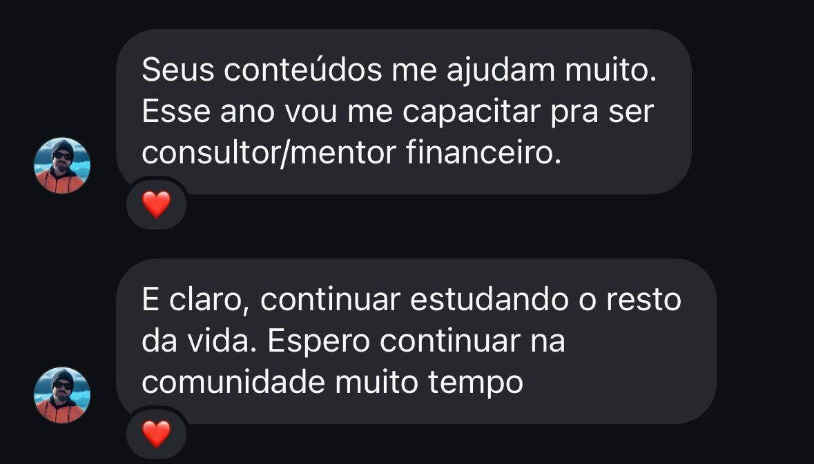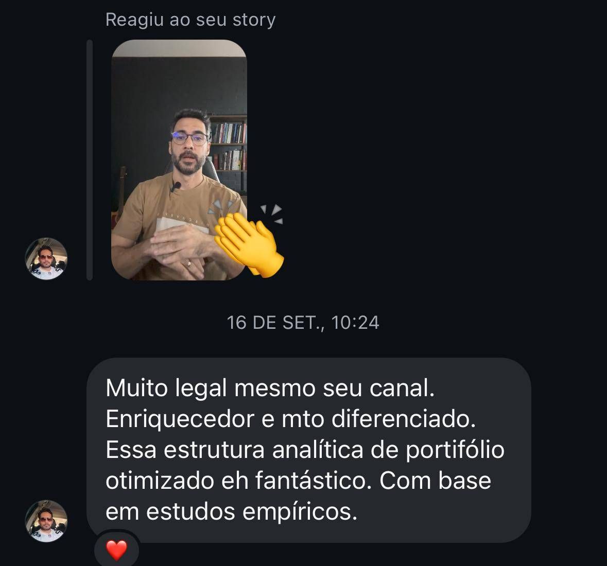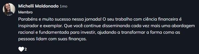 Participe de debates com pessoas que, como você, buscam clareza e eficiência em seus investimentos. Trocamos ideias sobre estratégias, classes de ativos e melhores práticas baseadas em estudos e evidências.