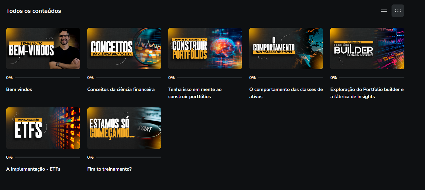 Em apenas uma semana, com 12 horas dedicadas ao conteúdo prático, você estará preparado para construir portfólios estratégicos e aplicar as técnicas aprendidas. A partir daí, poderá acessar os módulos que atendam às suas necessidades atuais ou votar nos próximos temas que iremos explorar juntos.