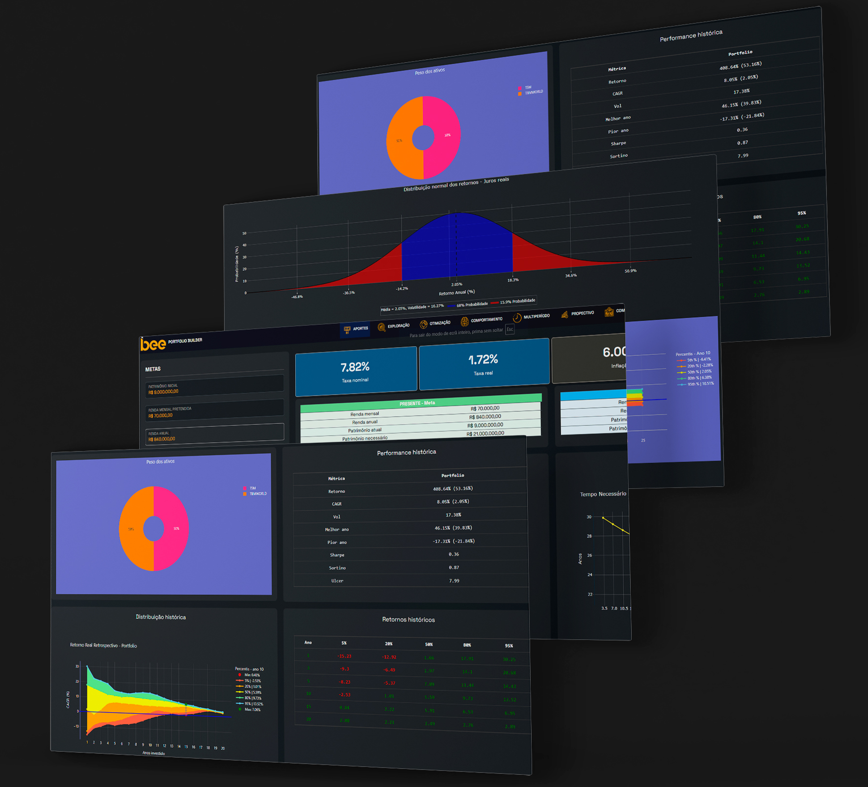 Todas as ferramentas necessárias para colocar em prática as conclusões dos temas — como calculadoras, gráficos e análises — estão sendo implementadas no Portfolio Builder, permitindo que todos possam utilizá-las.
